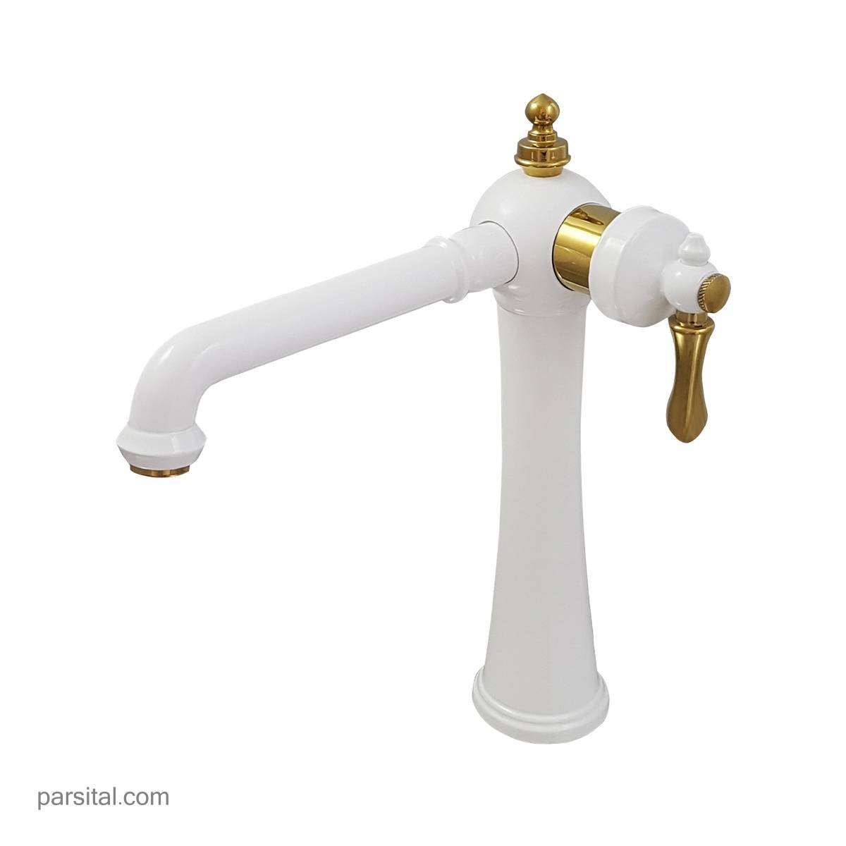 شیر روشویی پایه بلند نوبل مدل آپولو سفید طلا